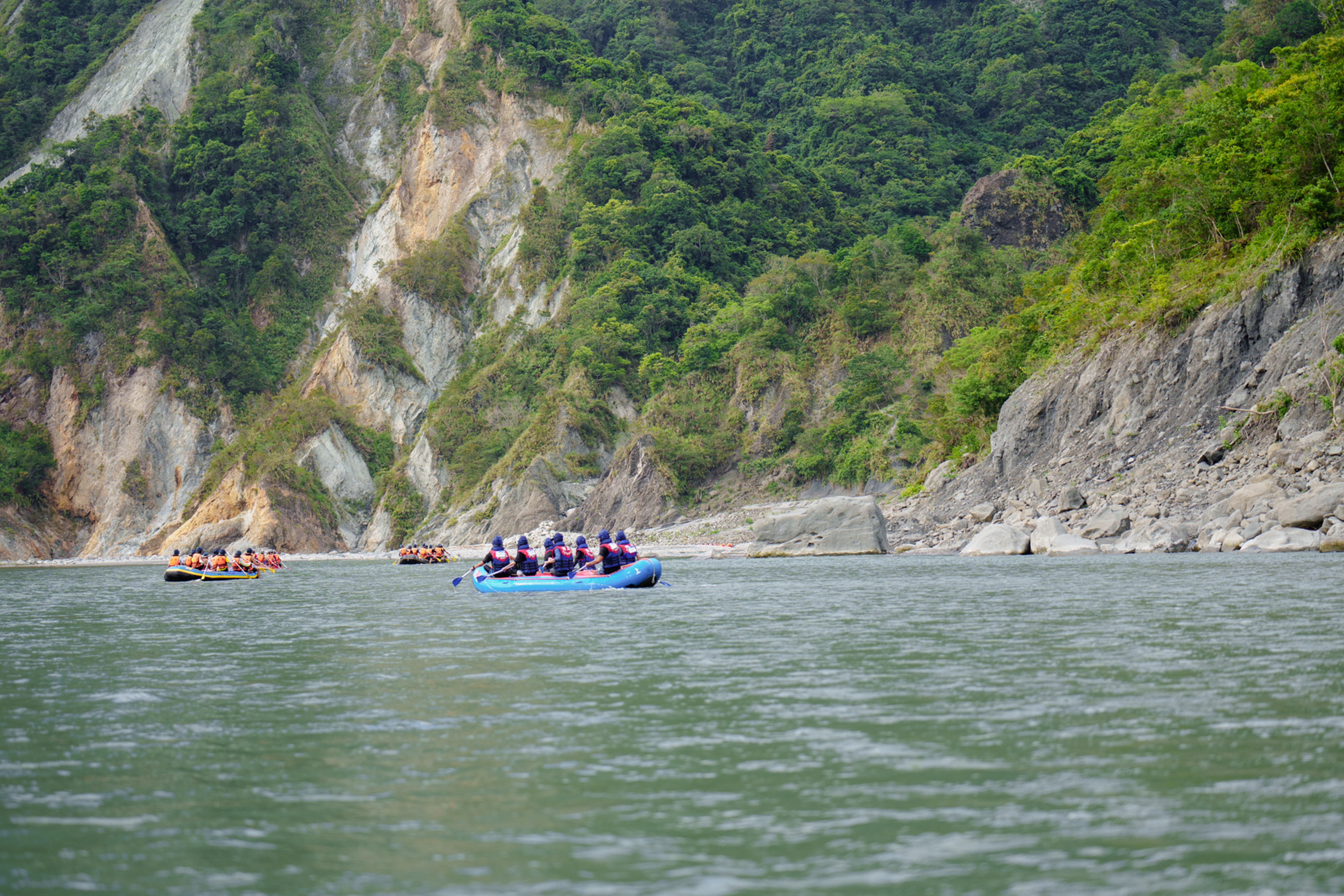 由瑞穗大橋到長虹橋出海口,整個航程約3~4小時,長22公里的河段中,由於河床達65公尺的落差,間有二十餘處險灘、激流,有長有短,泛舟其間刺激無比,是本島最佳的泛舟勝地。出長虹橋後溪面豁然開闊,皓白的石塊羅列水面,有「秀姑漱玉」之稱。每年6-7月所舉行的秀姑巒溪泛舟觀光季,已成為最重要的泛舟活動,如果你不畏危險,有冒險犯難的精神,可來此享受另類刺激體驗。