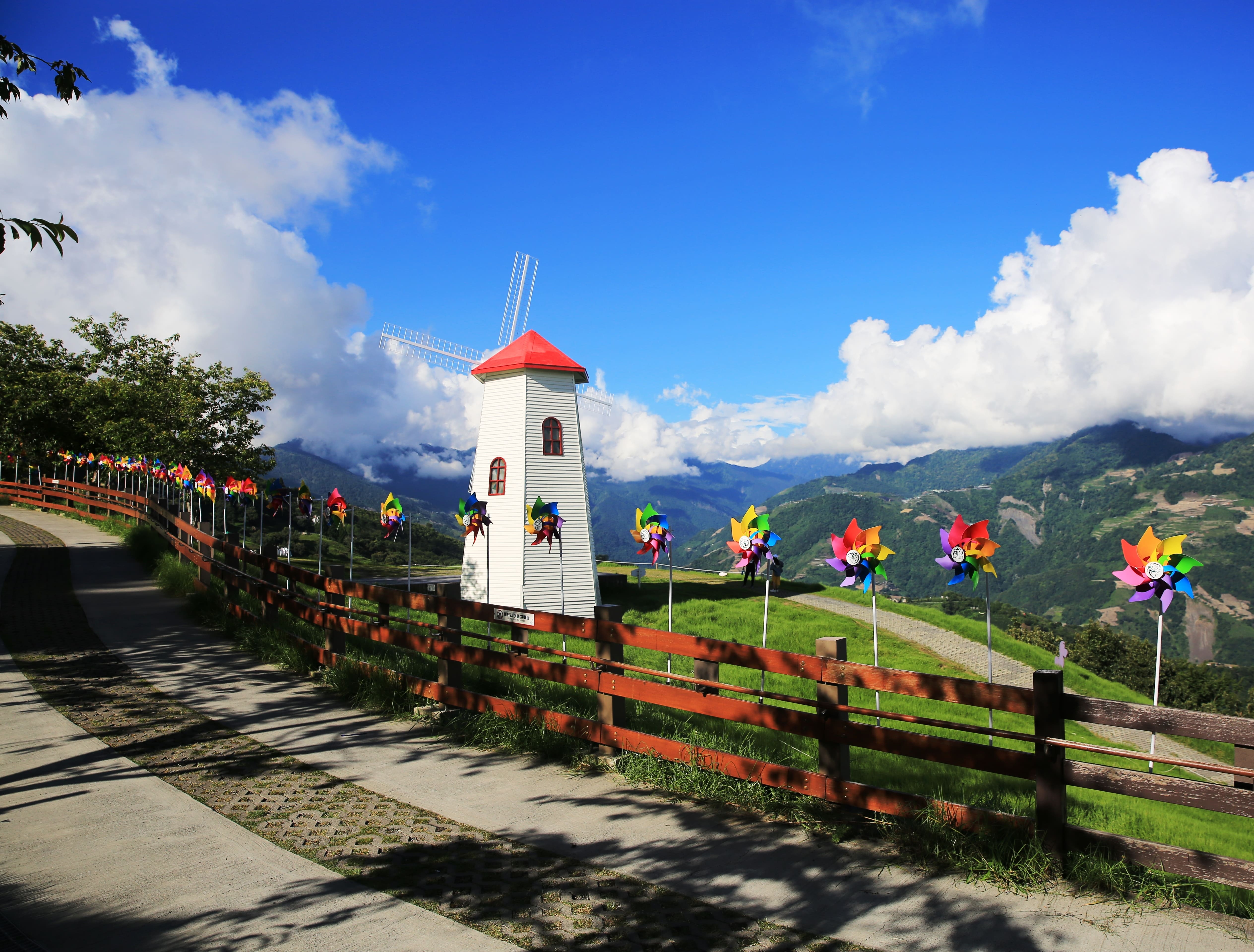 清境高空觀景步道 清境高空觀景步道位於海拔約1,700到2,000公尺間,全長約1.2公里,堪稱全臺最長、海拔最高的步道,沿途設置6個觀景平臺,可從步道穿梭在樹冠層之中,遠眺中央山脈、奇萊山等群峰,俯瞰牛羊低頭覓食,飽覽清境美麗風情。無障礙空間設計,讓嬰兒車及輪椅皆可無礙通行,是一非常適合親子全家出遊的觀光景點。